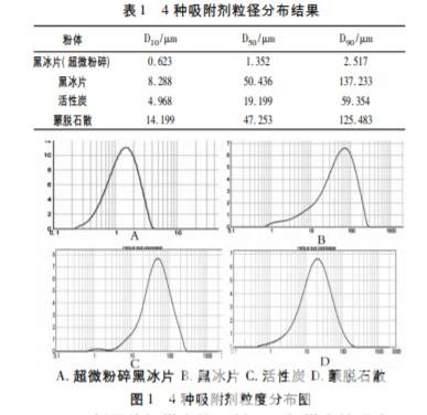蒙藥黑冰片( har gabur) 為豬科動(dòng)物野豬 Sus scrofa L. 的干燥糞便,經(jīng)密封煅成炭用,有消食、平 息“希日”、殺“粘”、破痞之功效,用于寒“希日”病, 消化不良,黃疸,“希日”痞,“希日”疫、“粘”疫,胃 “希日”癥,“粘”痧等病癥。活性炭具有較好的 吸附作用,黑冰片與活性炭外表很相似,但是黑冰片 在作為炭狀物的吸附性能方面卻很少有相關(guān)研究, 因此本文對(duì)黑冰片吸附性能開展了一系列研究,比 較了不同批次,不同粒徑黑冰片的吸附性能,并與活性炭、蒙脫石進(jìn)行比較,為探索其治療作用機(jī)理以及 新制劑、新功效的開發(fā)提供實(shí)驗(yàn)數(shù)據(jù)支持。