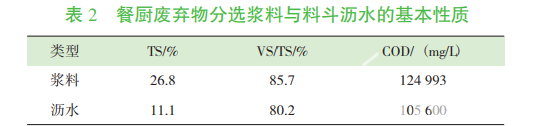 沉砂浮渣一體化分離裝置 (以下稱為“沉砂 浮渣分離裝置”) 的進料固相取自自動分選機分離 出的漿料 (以下稱為“漿料”);進料液相取自料 斗收集的瀝水 (以下稱為“瀝水”);漿料和瀝水 的基本性質如表 2 所示。