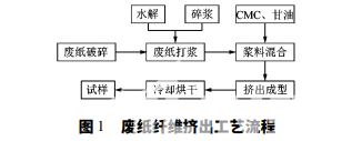 廢紙纖維擠出加工具體制備流程如圖 1 所示。